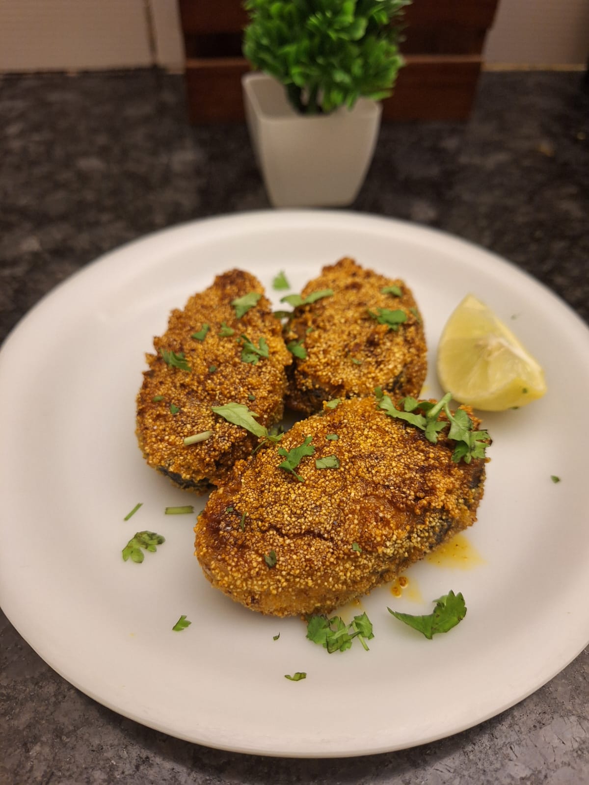 - Dip the paste-coated fish in spice mixed semolina and cover evenly